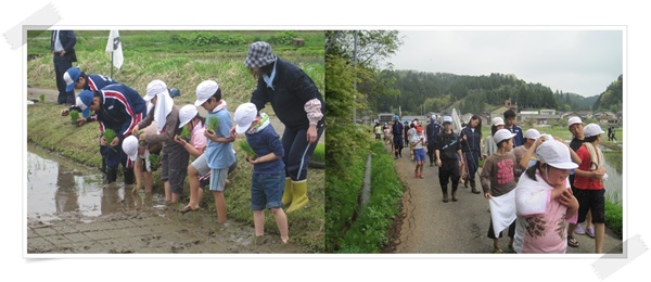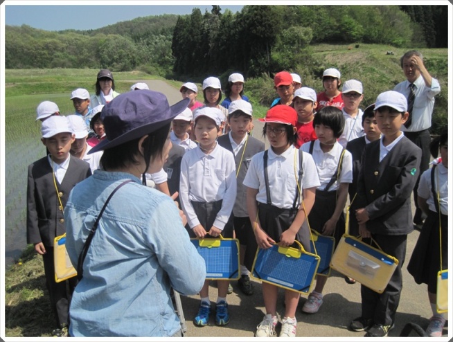 今日の5限目は,その第一回目で,地域の方々や,航空学園のお兄さん,お姉さんたちに,お手伝いいただて,『田植え体験』と,『枠転がし体験』を行いました。