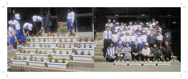 本日の5時限は,人権擁護委員会の方々と一緒に,人権の花の植苗を行いました。