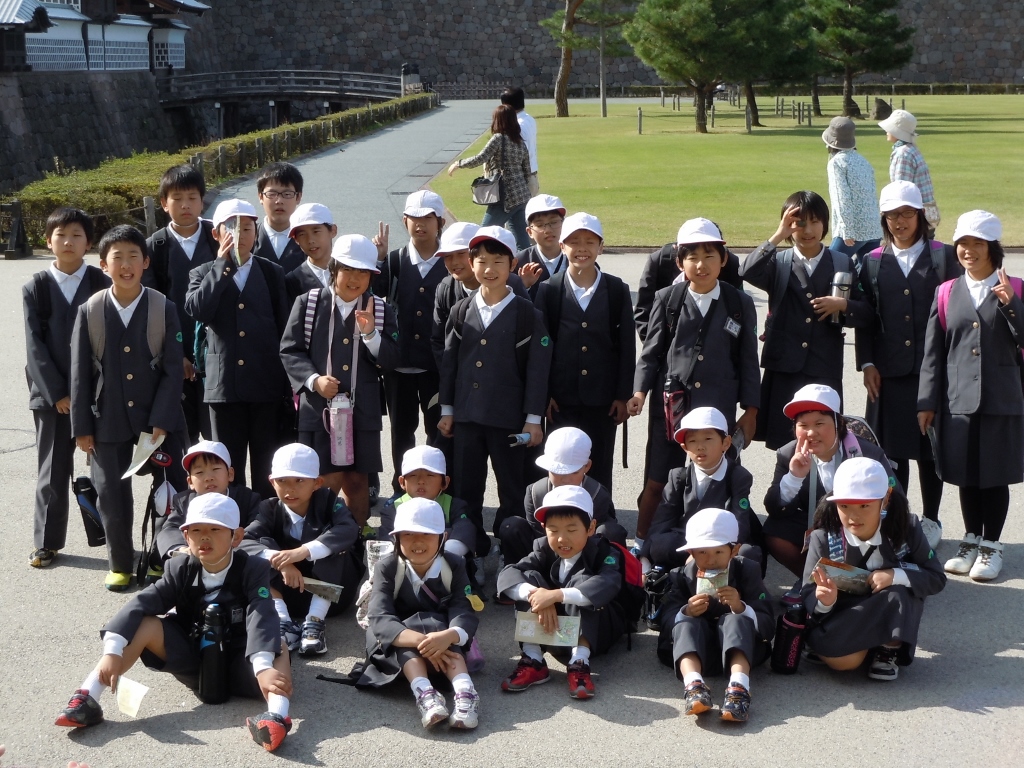 全校児童で石川県庁や警察本部、金沢城、兼六園の見学に行ってきました。