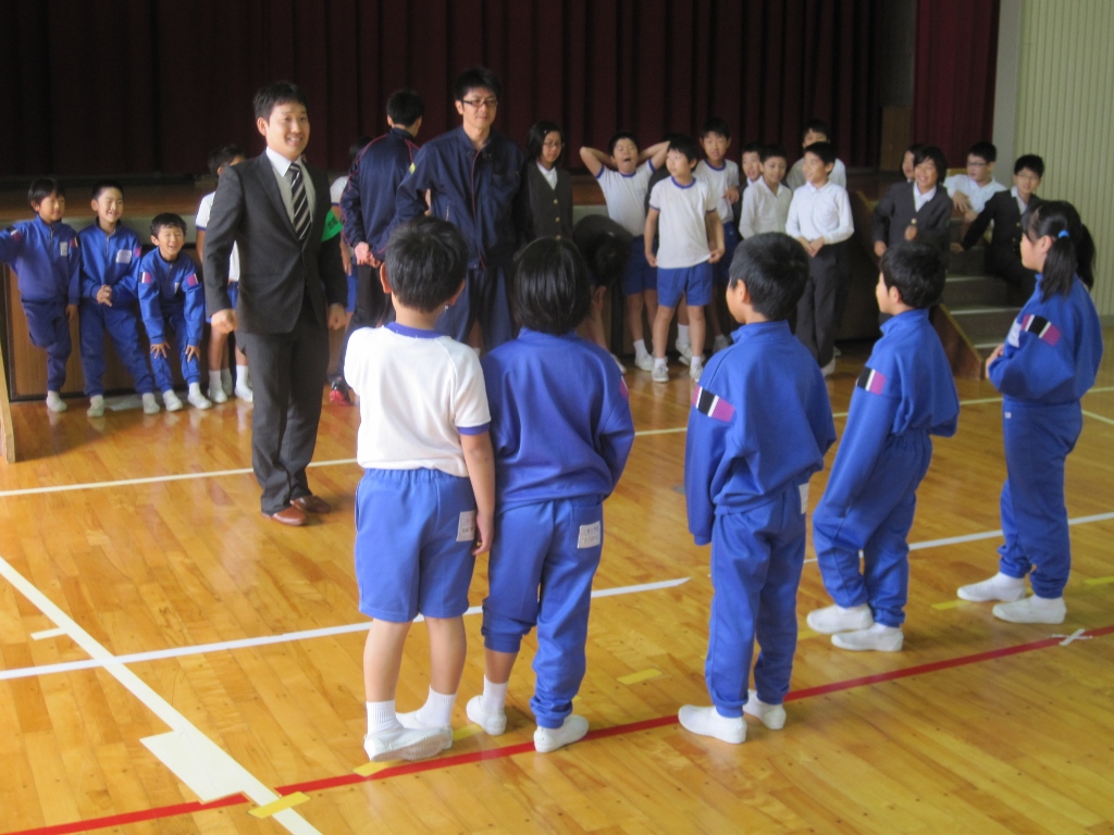 3限目学校に不審者が入ってきたことを想定して、職員が対応しました。子どもたちはスムーズな避難の訓練をしました。その後全員体育館に集まり、街で声をかけられて時の対応を警察の方から学びました。
