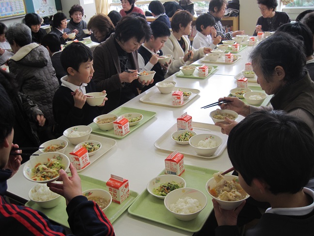 今日は上三井地区の方17名の方を招いて、1~4年生と交流し給食を一緒に食べ、ともに楽しい一時を過ごすことができました。