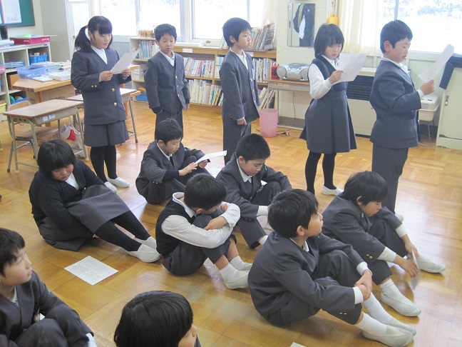 1~4年生は5限目の詩吟教室で、とても大きな声を出して練習することができました。