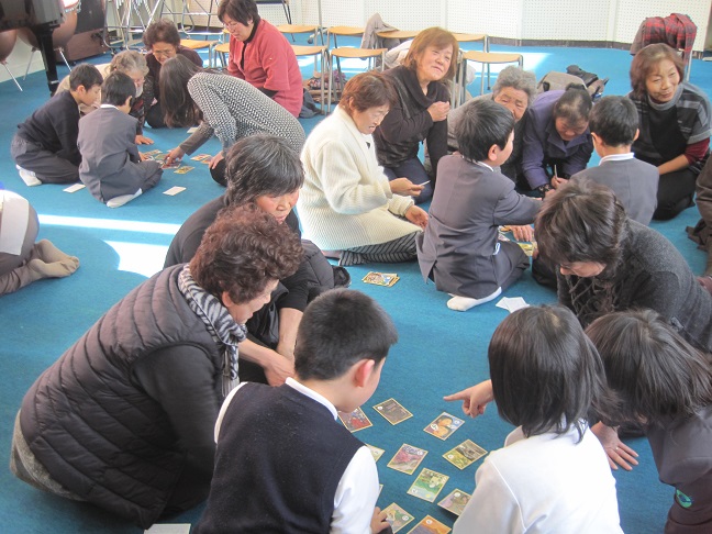 今日は上三井地区の方17名の方を招いて、1~4年生と交流し給食を一緒に食べ、ともに楽しい一時を過ごすことができました。
