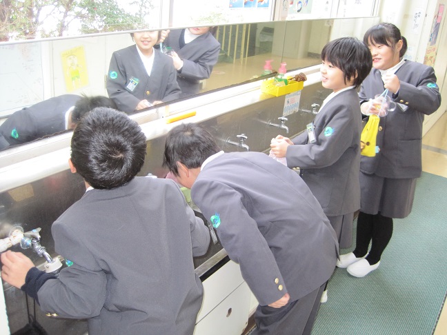 風邪予防のために、全校で長休み時間にお茶による一斉うがいを始めました。これは卒業式まで毎日続ける予定です。