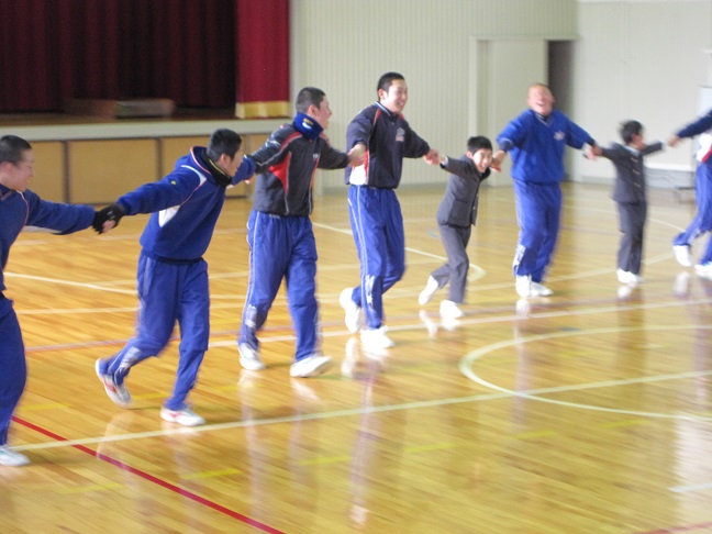 航空学園高校の野球部の監督やコーチ、部員総勢38名が雪すかしにきてくれました。おかげで非常階段からの通路や外から体育館に入る通路が確保できました。せっかくの機会だったので、作業に入る前に小学生とドッチボールや手つなぎ鬼などを通して交流を深めました。小学生はもちろん、高校生もとても楽しそうにゲームに参加していました。