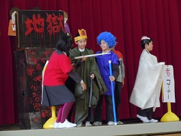 5・6時間目に卒業生を送る会がありました。最初にクラブ発表として456年生全員で権現太鼓を披露しました。その後全校合唱・合奏と続き、5年生、1・2年生、3・4年生、6年生の順に劇を行いました。どの劇も6年生を祝った内容の物で、6年生はとても楽しんでいました。最後に各学年で作ったプレゼントを手渡しされとても喜んでいました。短期間の練習でしたが、どの学年も見応えがあり、保護者の方も感心していました。