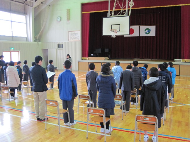 3月18日の卒業式に向けて、今日から練習が始まりました。3限目に1年から5年生が集まって体育館で歌と呼びかけの練習をしました。寒い日でしたが、子どもたちは防寒着を着て大きな声で呼びかけを行いました。