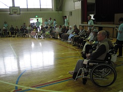 今日、1時30分からあての木園の皆さんを招待して七夕集会をしました。最初に七夕の歌をうたった後、全員が短冊の願い事を発表しました。それを笹の葉につけて各児童委員会の発表に移りました。七夕の紙芝居や虫歯の劇をみんなで見ました。出し物が終わった後、子どもたちが招待した皆さんと握手したり自己紹介や肩たたきなどをして交流を深めていきました。