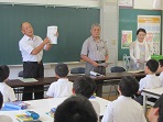 1学期最後の今日、おまわりさんの話を聞く防犯教室の後、校内テストの表彰式を行いました。終業式では校長先生の話の後、浅見先生の図書の話を聞きました。