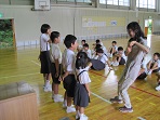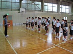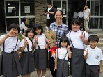 4月からお世話になったALTのジュリエン先生が今月でやめられるので、4限目に体育館でお別れの式を行いました。最初に校長先生の話、次にジュリエン先生からお別れの言葉を頂いた後、代表児童がメッセージを読み花束贈呈を行いました。最後には児童全員のプレゼントとして今月の歌「グッディ」を大きな声で歌いました。学校を出られるときには全員で写真を撮り、その後児童たちは個人的に別れを惜しんでいました。