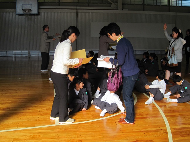 食の時間に子どもたちが書いた作文を先生が読み上げて紹介しています。行事の活動中に思ったことや新聞やテレビニュースで考えたことなど多種多様な内容で、聞いていてもそれぞれの成長過程がよく理解できるものとなっています。学校ではいろいろな作文を紹介することによって、文を書くことに興味・関心をもってくれればと願っています。