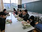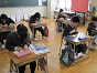 今日の給食を子どもたちは楽しみにしていました。節分給食として手巻き寿司があったからです。のりは5枚で納豆、かまぼこ、ウインナー、キュ-ーリ、漬け物の5品をのりにご飯と具を一つずつのせて手巻き寿司をつくって食べていました。みな手巻きをつくるのに一生懸命で、出来上がったらすぐにおいしそうに食べていました。