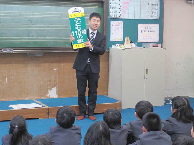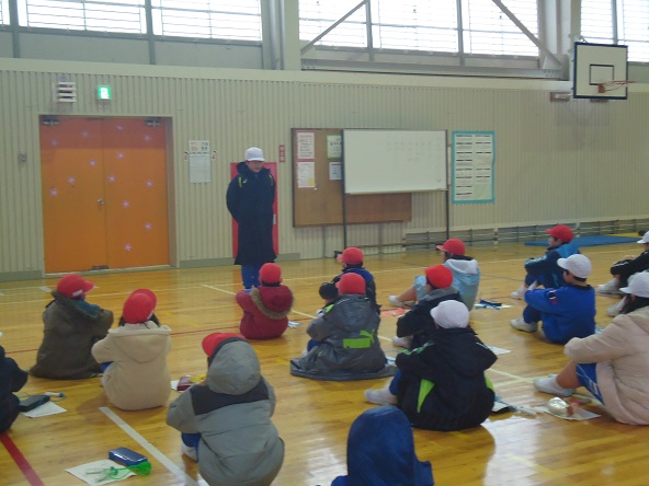 今日は三井駐在所と輪島警察署の方を招いて、不審者対応の避難訓練を実施しました。「いかのおすし」のお話を聞いた後に、実際に不審者に遭遇した場面を想定して、どのように逃げればよいのかを子どもたちで考えました。とてもよいお勉強になりましたね