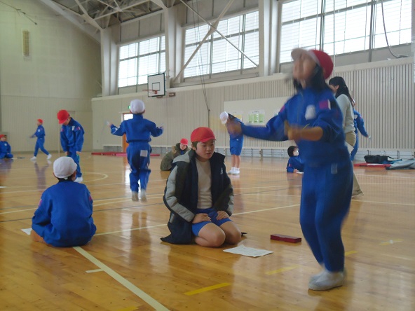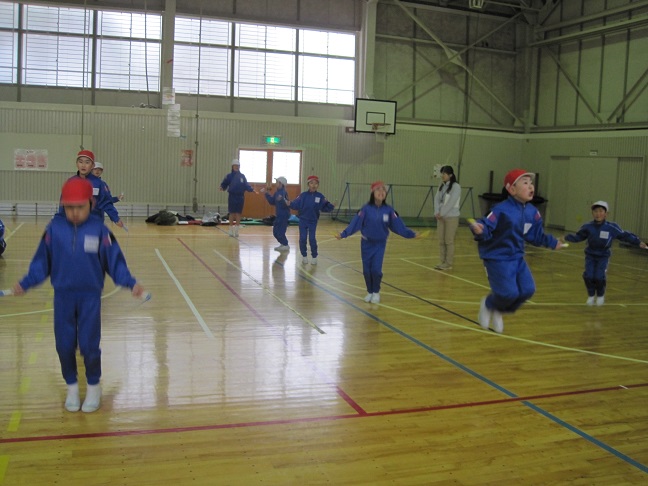 5限目になわとび大会がありました。この日に向けて、一月あまり長休みや昼休みに練習してきました。最初に児童による開会挨拶、準備運動に続き1~4年と5・6年に別けて各種目の 記録を取りました。記録係は5・6年生で、実に手際よく親切にアドバイスを交えながら低学年の面倒を見ていました。各学年とも自己新記録がでるなど、一人ひとりの力が発揮できる場ともなりました。最後に学級ごとに大縄跳びで楽しみながら記録に挑戦しました。