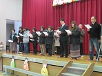 本校では、2ヶ月に1回、地域の講師の方を招いて詩吟教室を開いています。今日は4~6年生の11人に日本詩吟学院の4~10級の許証が贈られました。とても立派な賞状を頂いて、子どもたちはとても嬉しそうな様子でした。式の後は、今までの練習の成果を披露しました