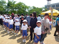 22日の日曜日、晴天のもとで、三井保育園・三井小学校・三井公民館による「第3回あての森総合運動会」がありました。小学校は少ない人数ですが、保育園児から老人会まで沢山の方の参加があり盛大に行うことができました。航空高校の吹奏楽部の生徒も参加して素晴らしい演奏を聴かせてくれました。その後、応援や親子のダンスにも参加して運動会を盛り上げてくれました。