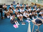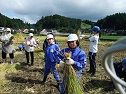 5・6限に稲刈りをしました。今年も地域の方18名と航空高校13名が手伝いに来てくれて、学校と併せて総勢60人で行いました。カマで稲を刈るのは順調に進みましたが、稲を集めてしばる作業にはみんな苦労して慎重に行っていました。小さな田んぼですが、一人ひとり十分に汗をかいた作業となりました。その後、運動場に行って地域の方4人と稲をはざに掛けました。