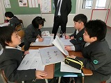 5年算数では、予習してきた学力調査過去問題をグループ内で各自が説明し合い、その後グループの考えとして一つにまとめ、全体に発表しました。メンバーは前回と同じなので子どもたちも慣れてきたようです。