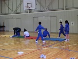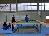 今学期最後のトランポリンの授業でした。今日は低学年と高学年が講師の先生から指導してもらいました。1年生は何回も練習をしてきたことで、普通のジャンプだけでなく、正座から方向転換をして立ち上がる技を習いました。子どもたちはとても楽しそうに練習できました。高学年は前半はマット運動の練習をしました。