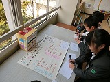 17日の卒業式に向けて、今日から卒業式練習が始まりました。今日は在校生が音楽室でお別れの言葉の練習と「大空がむかえる朝」の歌の練習をしました。お別れの言葉は縦割り班ごとに6年生との思い出を言葉にしました。一緒にドッチボールをして楽しかったことや優しく声をかけてもらったことなど、心を込めて大きな声で伝えられるように練習をしました。後半は歌の練習です。今年は在校生18名が2部合唱をします。低音部を担当する高学年の6名は、あまり練習時間がとれなかったのですが大変きれいに歌い、聞いていた低学年の児童も感心するくらいでした。