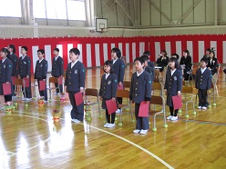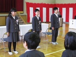 今年はインフルエンザで1週間前から欠席者が相次ぎ、15日・16日と学校閉鎖となりました。そんな中で思うとおりに練習が出来なくて、子どもたちの呼びかけや歌声など声が出るか心配していましたが、さすがに三井っ子、本番に強いと感心しました。在校生が卒業生への呼びかけや卒業生の学校生活を振り返っての思いは、心のこもった内容で声の大きさとともに保護者や来賓の方に感銘を与えたようでした。