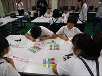 子どもたちは思い思いの絵を描き、装飾しました。