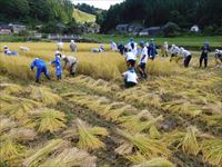 今日は、中谷さんをはじめ、老人会の方々、地域の方々、保護者の皆様、そして日本航空高校の留学生らの助けを借りながら、稲刈りを実施しました。