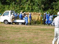 低学年がトラックまで運びます。