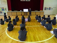 体育館の中で交通安全教室が行われました。