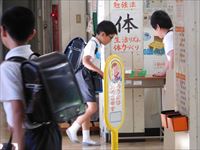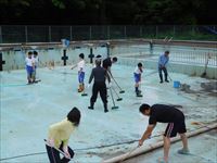 プール掃除は3~6年生の子どもたち、環境委員の保護者の皆様、地域の皆様の協力で行います。
