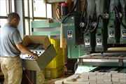 2階へ上がると大きな機械でちっちゃい木をすごいスピードで加工していました。