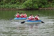 午後、能登少年自然の家へ到着し、河川活動(3人乗りボートとUFOボート)をしました。習うより、自分たちで学ぶことの方が多いようです。