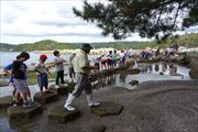 最終日の午前中はバスで移動して、海洋センターでの活動と九十九湾遊覧船に乗っての体験です。大きな鯛や烏賊、蛸、天然の鯵へ餌付け体験しました。