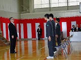 男子3名の卒業生たちは凛々しい態度で卒業証書を受け取り,