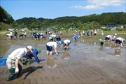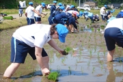 日本航空高校の生徒会と留学生の助っ人22名と一緒に植えました。