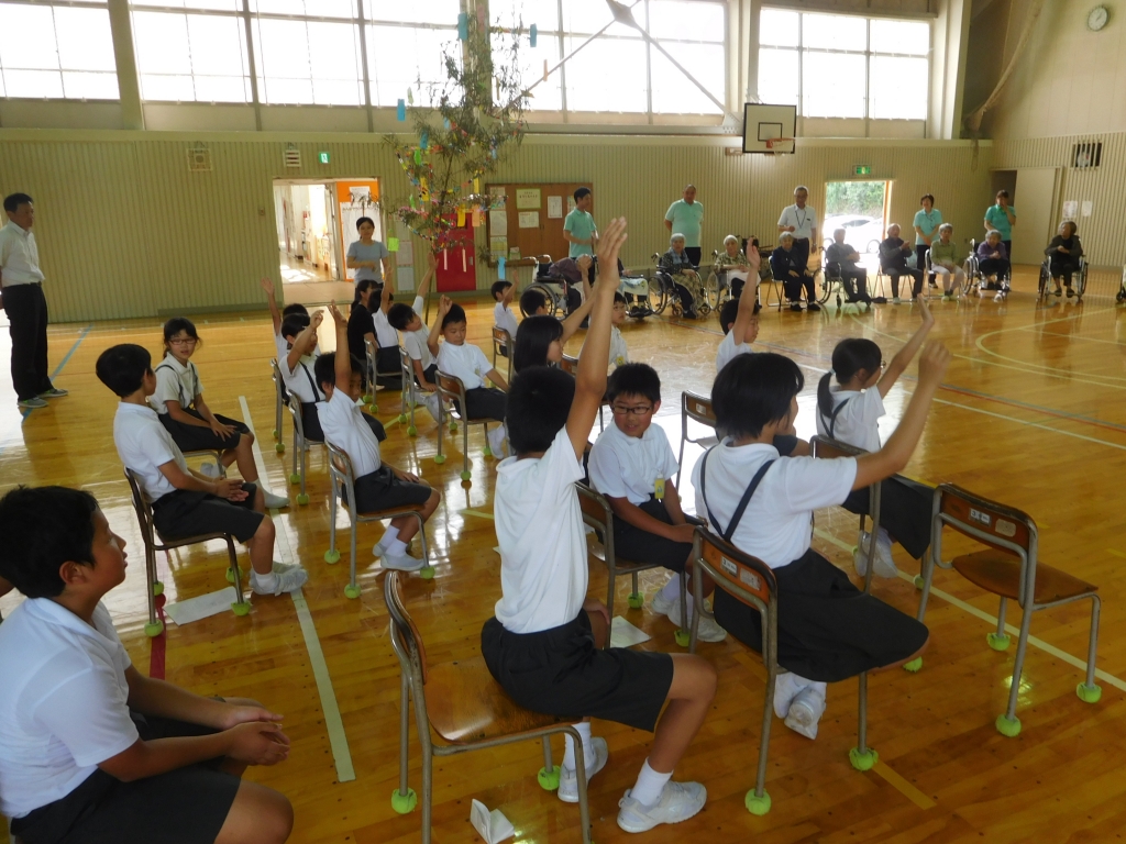 集会では、各学年の代表が願いごとを発表したり、あての木園の方全員に願いごとを発表していただいたりしました。