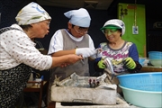 ① 「あごだし作り体験」トビウオの出汁作りの工程を1から学びました。