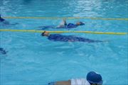 児童からは、「おもい」「動きにくい」の反応。重くてプールサイドに上がるのも大変なようでした。