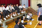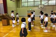 子ども達は、教室では机の下にもぐる、廊下では窓から離れる、体育館では中央でしゃがんで頭を隠す等、速やかに避難行動をとり、静かに体育館に集合することができました。