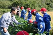 今回は、三井地区市ノ坂のまるやまに行き、秋の味覚栗をとり保存食にする活動、マムシの話、田んぼの江の水の生き物の観察、畦豆(小豆)の害虫トラップの話など盛りだくさんでした。