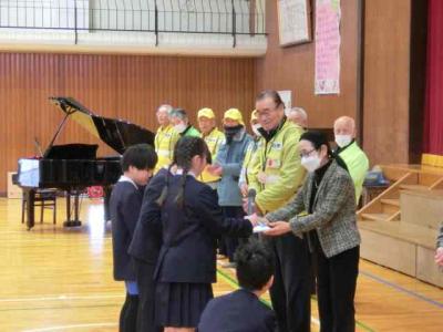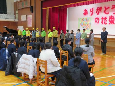 地域の方に感謝を伝える会が行われました。見守り隊さん、おはようボランティアさん、CSコーディネーターさんに感謝の気持ちを込めて書いた手紙をお渡ししました。