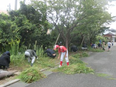 学童野球の皆さんには、グラウンドの草むしりや泥上げをしていただきました。