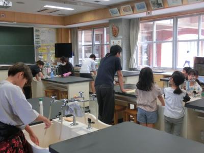 保護者、子どもたち、教員が参加し、敷地内の草刈り、校舎内の手洗い場みがきをしました。