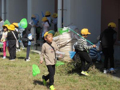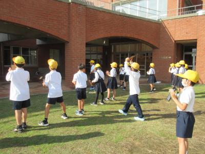 1年生は生活科の時間に、校庭や運動場で秋の虫探しをしました。思ったより虫は見つからなかったようですが、かまきりやバッタ、コオロギなどを見つけて秋を楽しんでいました。