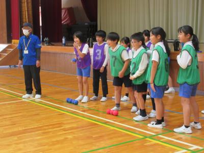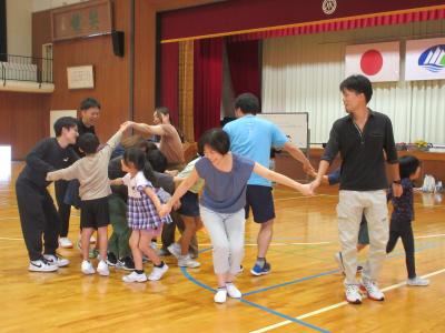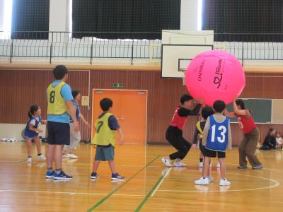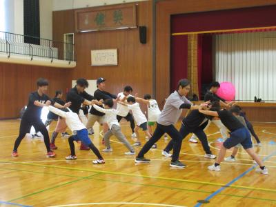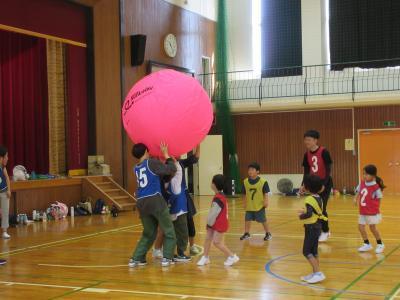 県レクレーション協会から講師をお招きし、育友会行事「親子レクレーション」を行いました。親子でキッズコア体操や「なべなべそこぬけ」、キンボールなどを楽しみました。参加者は笑顔いっぱいでした。
