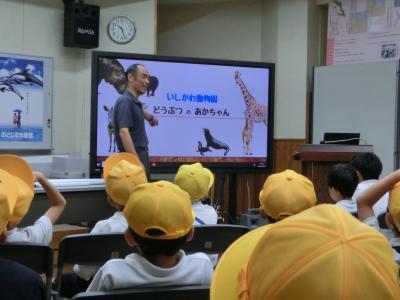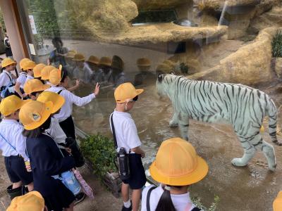 1年生は国語科「どうぶつの赤ちゃん」の学習で、いしかわ動物園に行きました。園内を見学したり、飼育員さんのお話を聞いたりして動物のことや動物の赤ちゃんのことを学びました。雨もあがり十分に楽しむことができました。