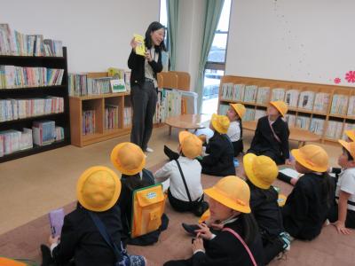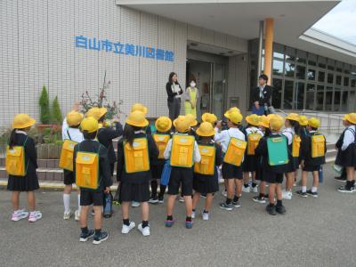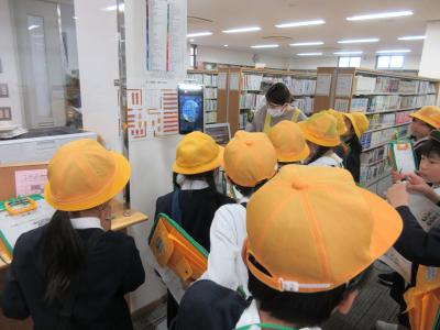 2年生の生活科で美川図書館に出かけました。いろいろな人が利用する美川図書館の様々な工夫について、館内を見学しながら説明していただきました。また、図書館の営業日や利用者数、貸出期間などについて、積極的に質問をしていました。