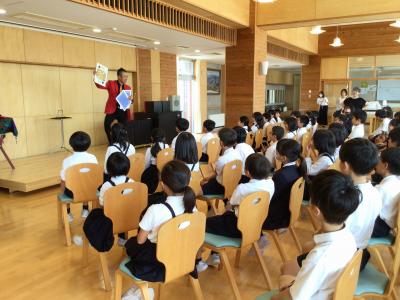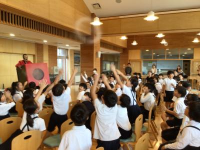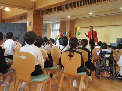 今日は「感性のびのび体験」事業で、学校に「笑顔泥棒」マジシャンルパンをお呼びしマジックショーを楽しみました。次から次へと出てくるマジックに子どもたちは引き込まれ、大いに盛り上がりました。