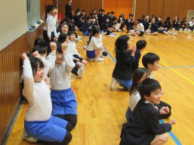 この冬一番の寒さとなりました。が、美川小学校の体育館は子どもたちのパワーで熱く燃え上がっていました。全校での「めざせ!1000回大なわ記録会」が行われました。目標は『3分間のクラス記録を更新すること』と『全クラスの合計が1000回をこえること』。緊張感の中、どのクラスも心をひとつにして頑張りました。全校での目標は達成❣みんなで大喜びしました。