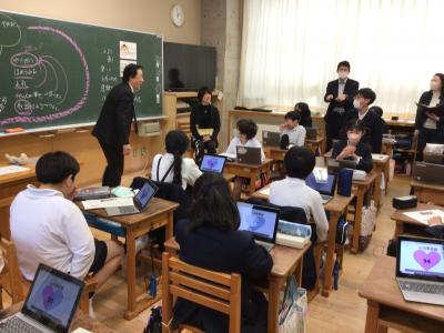 道徳の校内研修会を行いました。岐阜聖徳学園大学 山田教授が5年生に授業を行い、教員が参観して指導法を学びました。ゲストティーチャーとして粟津温泉喜多八の若女将が来校し、5年生と一緒に「働くこと」について考えました。子供たちはよく考え、積極的に考えを友達と交流しました。